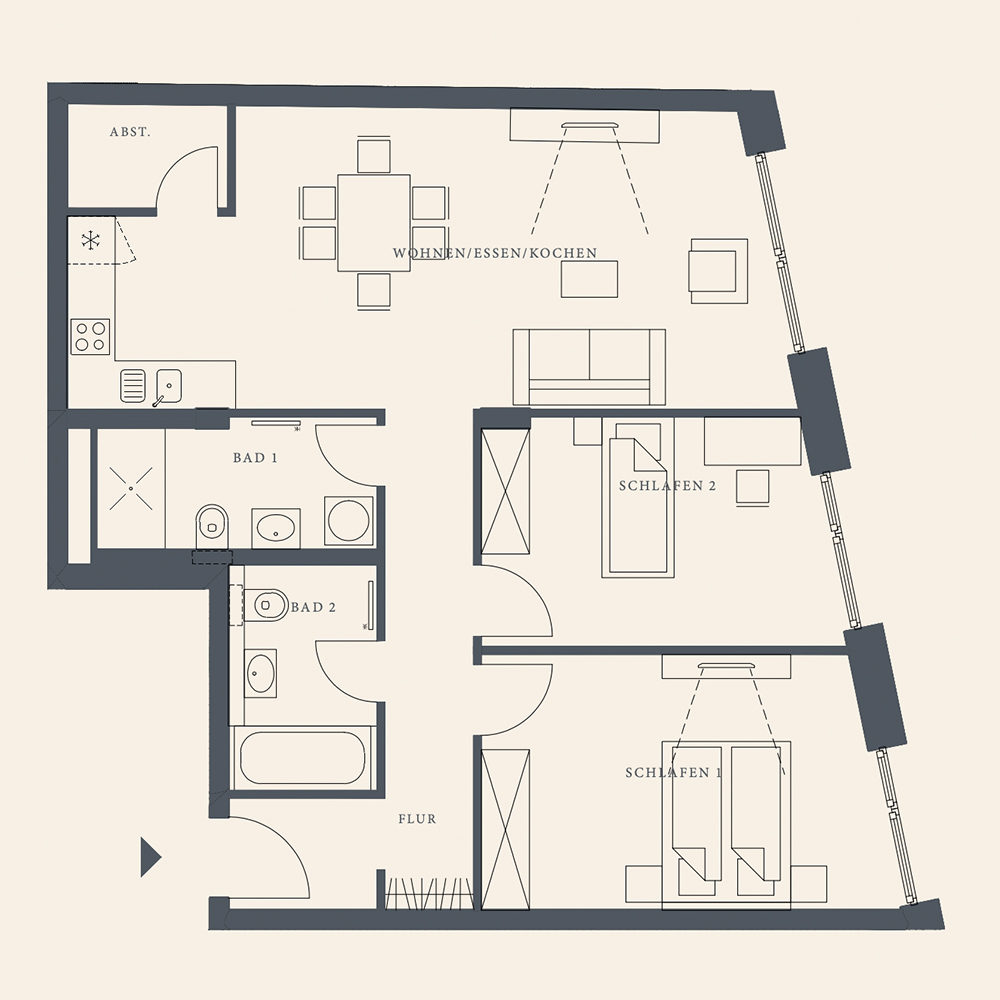 - Alle Wohnungen sind auf Wunsch mit modernen Einbauküchen ausgestattet.